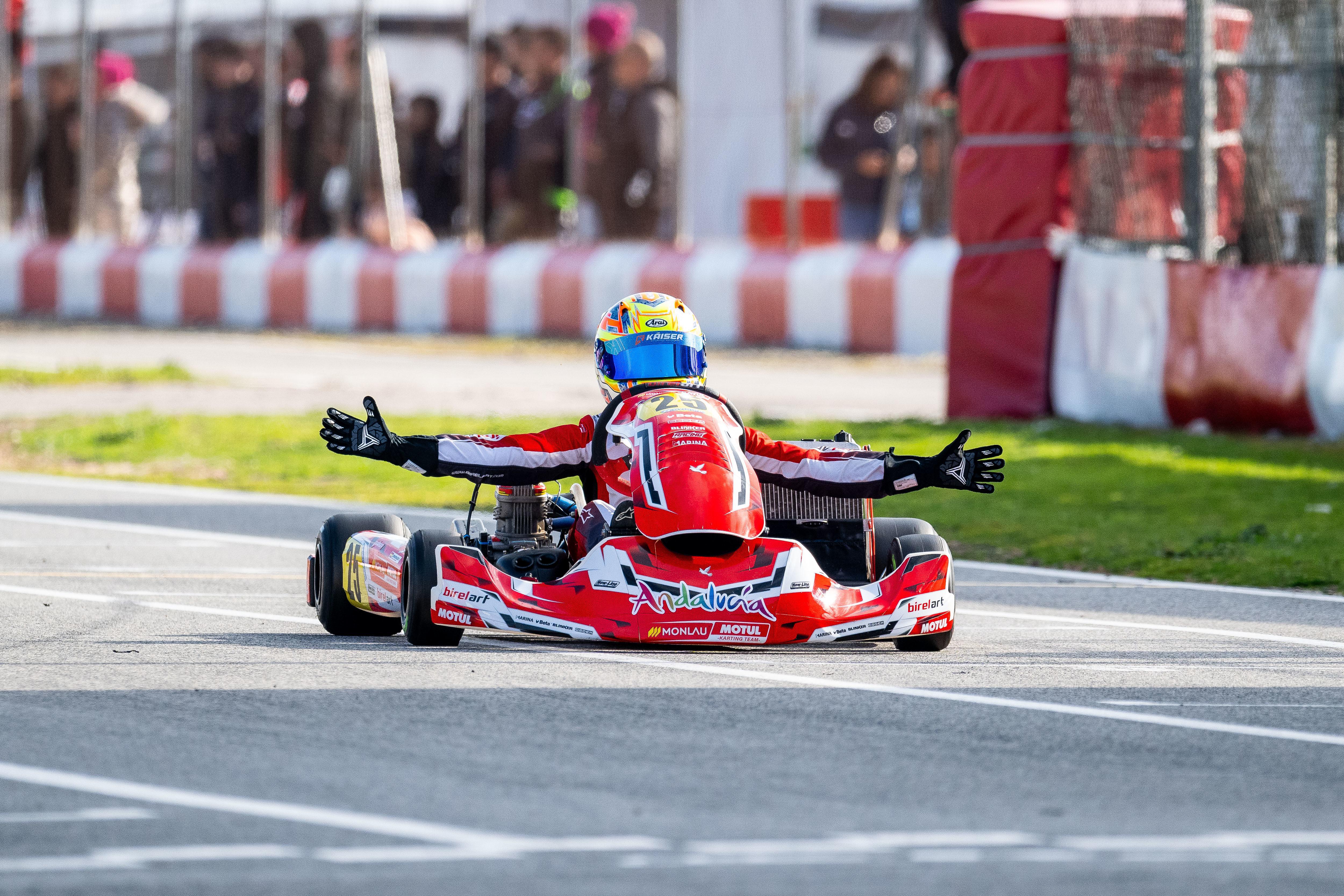 Con esa carta de presentación, la temporada 2026 difícilmente podía ir a mejor. Pero lo hizo. Una semana después de esa actuación, en la primera ronda del CEK Hyundai 2026 (celebrada en el KartCenter de Campillos, del 20 al 22 de marzo), el miembro de la Selección Andaluza de Karting completó un fin de semana con puntuación perfecta: mejor tiempo en los entrenamientos cronometrados, mejor piloto en las mangas y doble victoria. Es decir, 101 puntos.